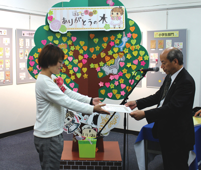 玉井社長は授賞式で、「この会場に並びきらないほどのたくさんの応募があり、それぞれが力作。また場内奥の作家さんの展示では、これだけの作品群を見たのは初めてで、消しゴムスタンプの領域を超え、非常に進化していると驚いている。まだまだ発展すると奥の深さを感じた。当社は創業100周年を迎えた歴史ある会社だが、101年目以降も永続していけるような会社にしていきたい」と挨拶した。