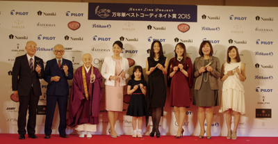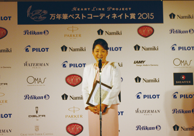 日本輸入筆記具協会、日本筆記具工業会と国内外筆記具メーカー14社による、2015年の万年筆が最も似合う著名人に贈るハートラインプロジェクト「第12回万年筆ベストコーディネイト賞2015」の表彰式が、11月24日午後、羽田空港第1旅客ターミナル内のギャラクシーホールで行なわれ、受賞した著名人らが万年筆の魅力を語った。