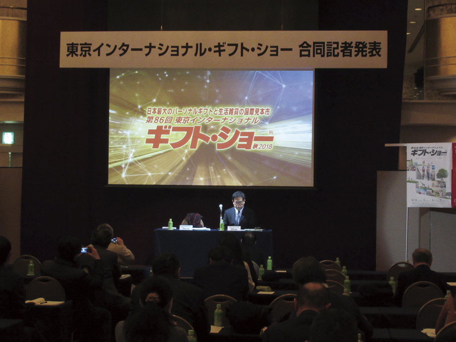 今年8月から東京ビッグサイトで開催する日本最大のパーソナルギフトと生活雑貨の国際見本市「第86回東京インターナショナル・ギフト・ショー秋2018」(主催ビジネスガイド社)の記者発表会が2月21日、東京都台東区の浅草ビューホテルであった。