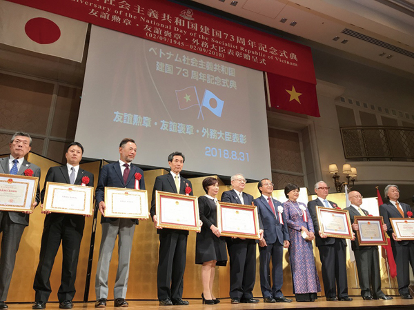8月31日、帝国ホテル大阪で行われた「ベトナム社会主義共和国の建国73周年記念式典&友誼勲章、友誼褒賞、ベトナム外務大臣表彰書授与式典」で授与式があり、表彰された。