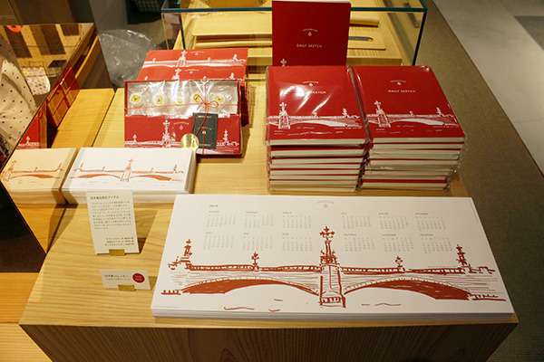 さらに、同店限定アイテムとして、タッチアンドフローの定番ノート「DAILY SKETCH」に日本橋のイラストを箔押しした「DAILY SKETCH 日本橋限定バージョン」(税抜600円)、活版印刷の「活版ポストカード 日本橋柄」(税抜250円)、ラブレターモチーフの金太郎飴がかわいい「ラブレターキャンディボックス」(税抜650円)などを販売する。