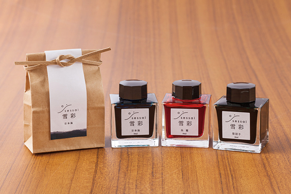 また、滝沢印刷のオリジナル商品として、越後杉をグリップに使用した「越後杉ボールペン」や11月23日から発売の新潟初のご当地万年筆インク「オリジナルボトルインク “雪彩(せっさい)”」など、モノづくり王国である新潟から数々の文具を発信する。