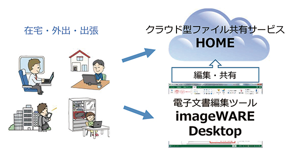同サービスを利用することにより、クラウドストレージ格納で自宅からも文書アクセスを可能にし、あらかじめ在宅勤務時などに会議配布用の事前準備を行うことなど、場所を選ばずに活用できる。