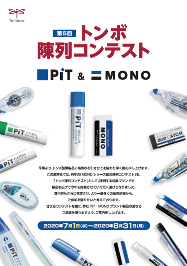 いままで「MONO陳列コンテスト」として4回実施し、今回から対象ブランドを拡大して「トンボ陳列コンテスト」とする。具体的にはPiTブランドとMONOブランドが陳列コンテストの対象になる。