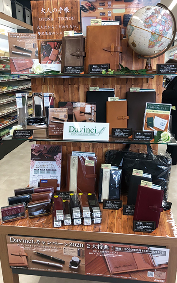 レイメイ藤井(藤井章生社長)は、8月20日、同社のロングセラー、ダ・ヴィンチシステム手帳の認知度向上と、システム手帳販売の活性化を目的に実施した「第4回Davinci店頭陳列コンクール」の結果を発表し、BESTディスプレイ賞(4店舗)とGOODディスプレイ賞(14店舗)を発表した。