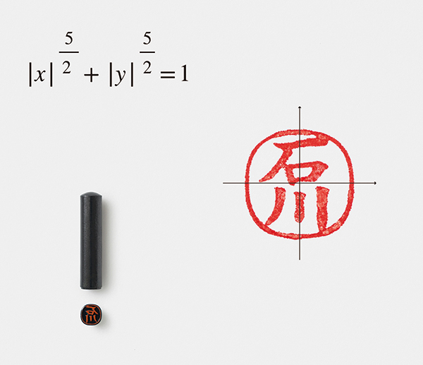 円弧を面取りするより人の目に違和感がなく、持ち心地も優しい。円形、四角、どちらの印欄にも収まりがいい、○でも□でもない、最も美しいしるしのカタチ、として評価された。