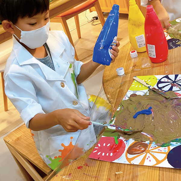 カリキュラムは、ストロービーズやカタノミ、スライムなど多彩。金沢学院大学芸術学部の棒田邦夫教授と組み、データに基づいた独自の理論をもとにも毎月つくる。12月は「色の順応性」をテーマに、みんなで学び表現する。