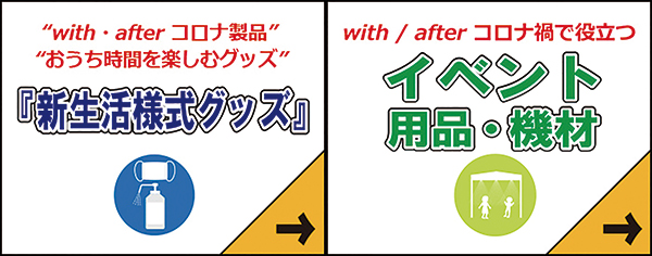 新たな特設エリアとして新設されるのは、「新生活様式グッズコーナー」と「イベント用品・機材コーナー」の2つ。