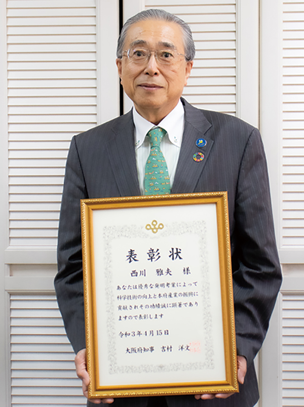 その実績も考慮されて、今回の大阪府発明功績者表彰に繋がったのではないかと、西川会長は語っている。