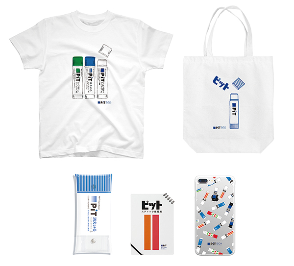 トンボ鉛筆(小川晃弘社長)は、のりのブランド「ピット/PiT」発売50周年を記念して、レトロな歴代のピットロゴとスティックのりパッケージデザインなどをウェアや小物のおしゃれアイテムに展開したピットオリジナルグッズを、7月1日からインターネットを通じて期間限定で販売開始した。