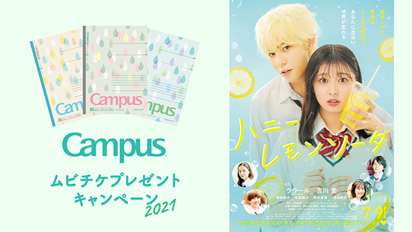 コクヨは、公開中の映画「ハニーレモンソーダ」とタイアップし、キャンパスノート5冊パックの購入で映画鑑賞チケットが当たるキャンペーンを7月9日から実施している。