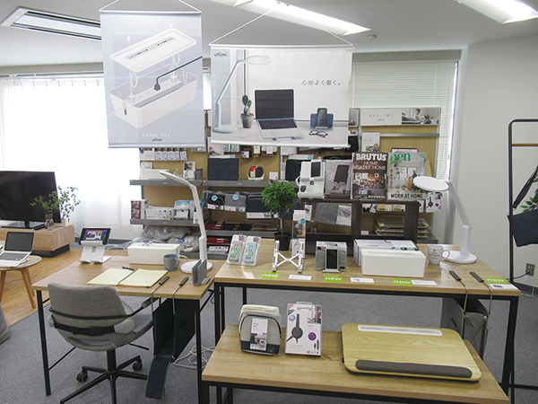 スタジオには、学童向け文具や働き方改革に対応するバッグなど、2021年8月以降に発売する新製品も展示されている。