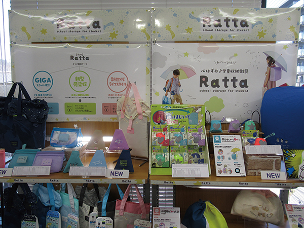「Ratta(ラッタ)」は、「ラッタラッタ」と心がはずむ子どもの気持ちから名付けた、学童収納雑貨の新シリーズとして、8アイテム36点(11月)を揃える。