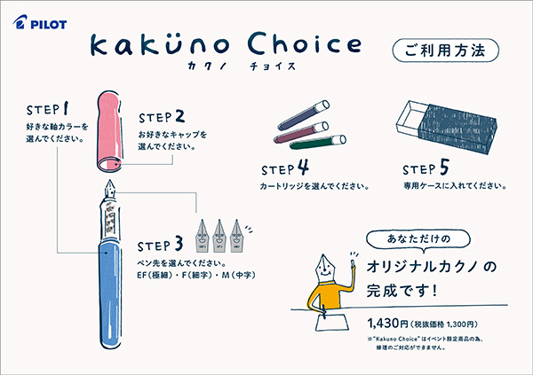 また、ライフログをテーマにしたギャラリー企画では、“とっておき”ノート「PapiKnot(パピノット)」による毎日の記録を楽しく彩るアイデアの提案や、パイロットの万年筆「カクノ」を使った体験イベントを行う。