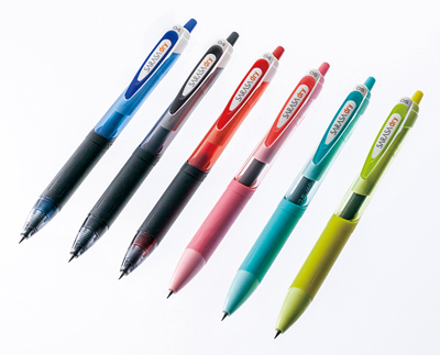 「サラサドライ」が注目されているのには理由がある。水性ジェルインクのさらさらな書き味はそのままに超速乾性の新成分を配合しているため、左手で書いても文字を手で擦らないからだ。